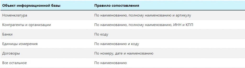 - если какие-то объекты в базе и в документе называются по-разному, пользователю придется это выбрать вручную. База запомнит выбор и в следующий раз автоматически использует при сопоставлении